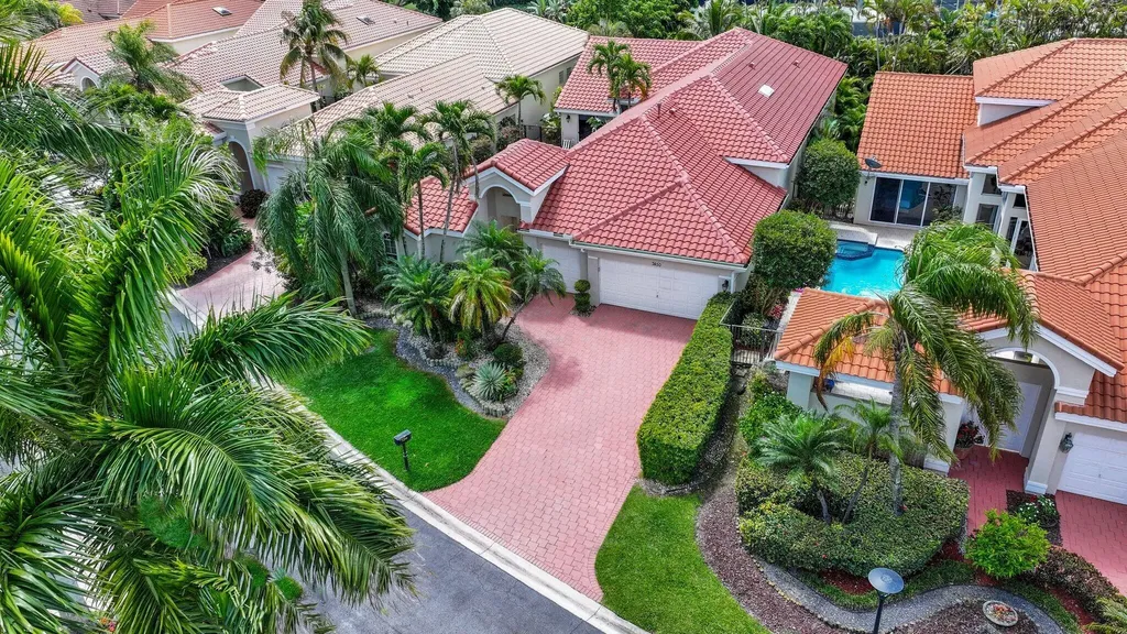 Welcome to this beautiful, courtyard style home in Boca Grove. Situated on a quaint, cul-de-sac road, this home has 4BR/3.5BA, raised ceilings with abundant natural light, a modern, newly renovated primary bathroom, new floors and a completely re-designed, open plan kitchen that is simply stunning. Centrally located and just a short walk to the clubhouse/gym and/or Houses of worship, this meticulously maintained home also features a separate guest house and ensuite, a heated salt water pool, new roof (2022), new carrier air conditioner (2023). Boca Grove is the epitome of relaxed living. The BG community features top notch security, a recently renovated ($11.5m) club-house, multiple social events, pickleball courts and a championship layout golf course.