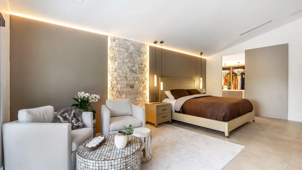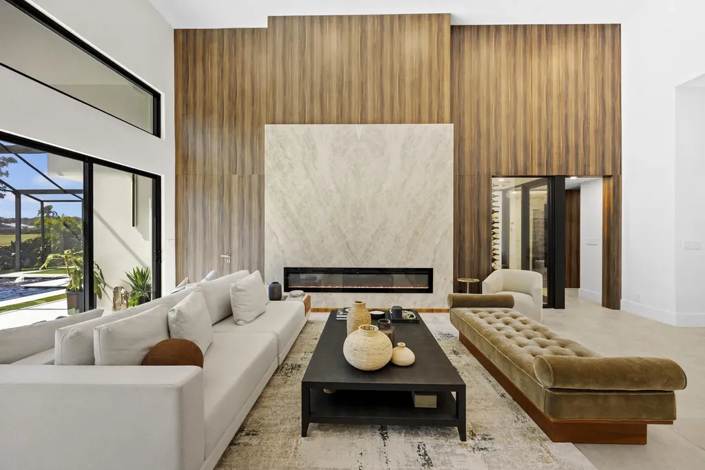 From the moment you arrive, this fully renovated home captivates with a floating water walkway and front glass pivot door. Inside, soaring 19-foot ceilings, open-concept living, and impeccable high-end finishes set the stage for sophisticated living. The residence features 4 en-suite bedrooms with custom closets, a spacious primary bedroom with wet-room and dream closet, a chef's kitchen with Wolf appliances, bespoke cabinetry, and quartzite island, a modern Taj Mahal stone fireplace, as well as a 300-bottle wine cellar and man cave garage that elevate lifestyle and entertainment. Step outside to your private resort oasis with a saltwater pool, sunken lounge, in-pool fire pit, swim jets,10-person spa, and cabana steam bath, all framed by lush tropical landscaping and golf course views. This stunning Fully Renovated Home with No Detail Overlooked can be yours.