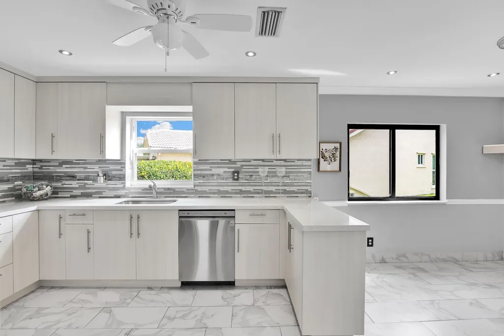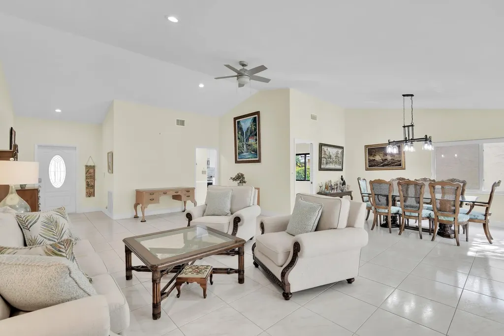 Located in the prestigious 55+ community of Cloverfield, close to places of worship, stores, and only minutes to the beach and downtown Boca Raton. It was updated with hurricane impact glass windows in most of the windows and shutters in the Florida Room windows. The kitchen has newer stainless steel appliances, countertops and cabinets were update in 2021. Newer air conditioning installed in the the Florida Rm. The house has 2 spacious bedrooms with ample closets, a two car garage, vaulted ceilings, a spacious living/dining room, well lit spaces with windows and sliding glass doors overlooking a very nice and private back yard. The community has a pool and low HOA fees.