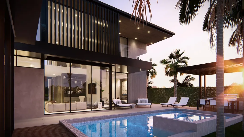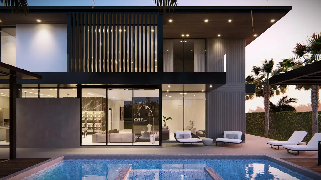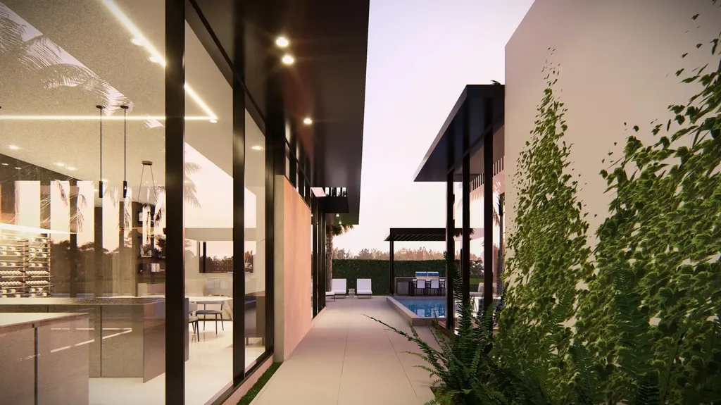Presenting an unparalleled opportunity to acquire a luxurious new construction estate within the esteemed Boca Villas community at 300 NE 11th Street. This architectural tour de force, brought to life by the renowned Empire Development Group, spans 7,126 square feet and epitomizes the perfect fusion of sophisticated design and contemporary functionality. Upon entry, soaring 24 ft. foyer ceilings greet you, magnifying the grandeur of the space and setting an elegant tone that resonates throughout the residence. Known for their meticulous attention to detail, Empire Development has crafted this home using the finest materials and finishes. The residence offers six generously proportioned bedrooms, each with its own en-suite bathroom and private balcony or patio. An elegant powder room on the main level further enhances convenience for both residents and guests. Designed with functionality and sophistication in mind, the home includes dual offices -one on each level, a wine room discreetly nestled beneath the staircase, a second-floor family room, and a private elevator for effortless access. For added luxury, a fully appointed guest house is thoughtfully designed to offer a bedroom, full bathroom, and living area complete with a kitchenette, making it the perfect retreat for overnight visitors or a serene poolside lounge area.