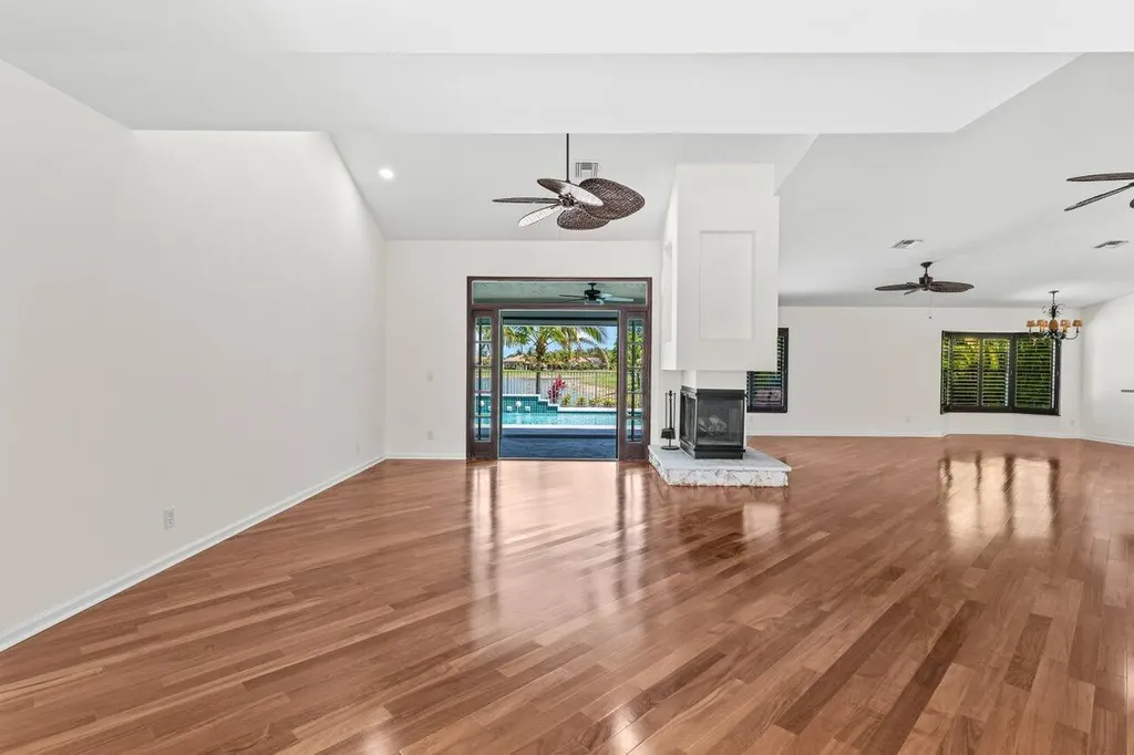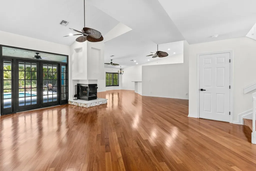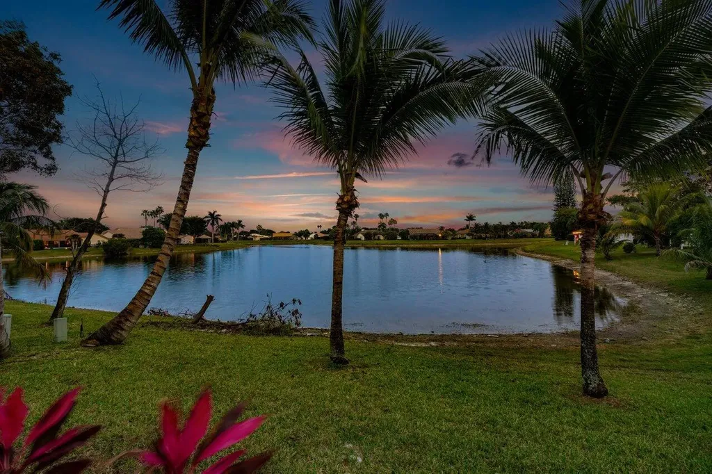 This exquisite residence located on a unique oversized private corner lot has recently undergone a comprehensive renovation just completed in April 2025. The renovation includes a complete repainting throughout, new bathrooms, a new kitchen featuring stainless steel appliances with new granite countertops, new flooring, 2 brand-new A/C units (April 2025), new lighting, a new front entrance and pool decking, new ceiling fans, a new sprinkler pump, and much more. It truly is a must-see. Nestled in the desirable private gated community of Island Lakes in Boca Raton, this fully renovated two-story single-family residence with stunning water views features 3156SF under air, 5 bedrooms, 3.1 bathrooms, custom wood flooring, high ceilings, a large loft, 3 car garage w/AC, fenced pool, outdoor shower, unobstructed lake views, and a secluded yard. This oversize corner lot boasts mature trees for ultimate privacy. The downstairs features a split-open floor plan with a wood-burning fireplace, living room, dining room, family room, sitting room, laundry room, and an updated kitchen with a breakfast area. The primary suite has a spacious on-suite bathroom, a custom-built walk-in closet, and an adjacent bedroom with another full bathroom. The second floor includes 3 bedrooms, a full bathroom, and a large loft. This property sits on a large 17,000 SF corner lot, one of the largest lots in this community, and is surrounded by mature trees for total privacy.