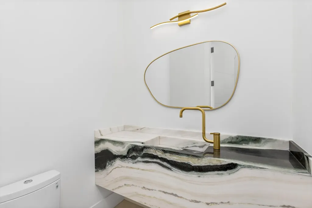 The first floor boasts key features include soaring ceilings, a modern open concept kitchen equipped with a natural gas Wolf range and Sub-Zero appliances, butler's pantry, & custom cabinetry. There is one guest bedroom situated on the first floor & an office.