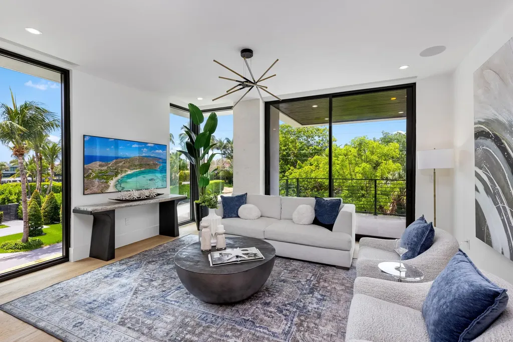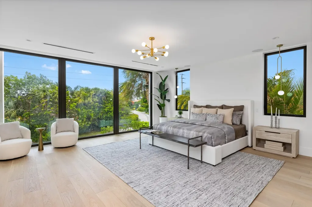 A visionary three-story gem is reimagining luxury residential living in east Boca Raton. The latest in new construction in the exclusive Boca Raton Riveria community, 98 NE Spanish Trail, is a transformative masterwork and has just been completed and is move in ready. Located on a coveted corner lot, this three-story layout seamlessly combines ultra-contemporary & an open-concept floor plan bringing your dream home to life. This home will span more than 7,625 square feet (5,750 square feet of which is under air), and will encompass five en suite bedrooms, five full baths, and one powder room, porcelain adorn the first level, while white oak wood flooring graces the second & third. Upon entering home, striking architecture commands attention, emphasizing floor to ceiling glass windows, letting in lots of natural light and views of lush landscaping. Luxury finishes and refined design elements elevate the property to unparalleled heights.