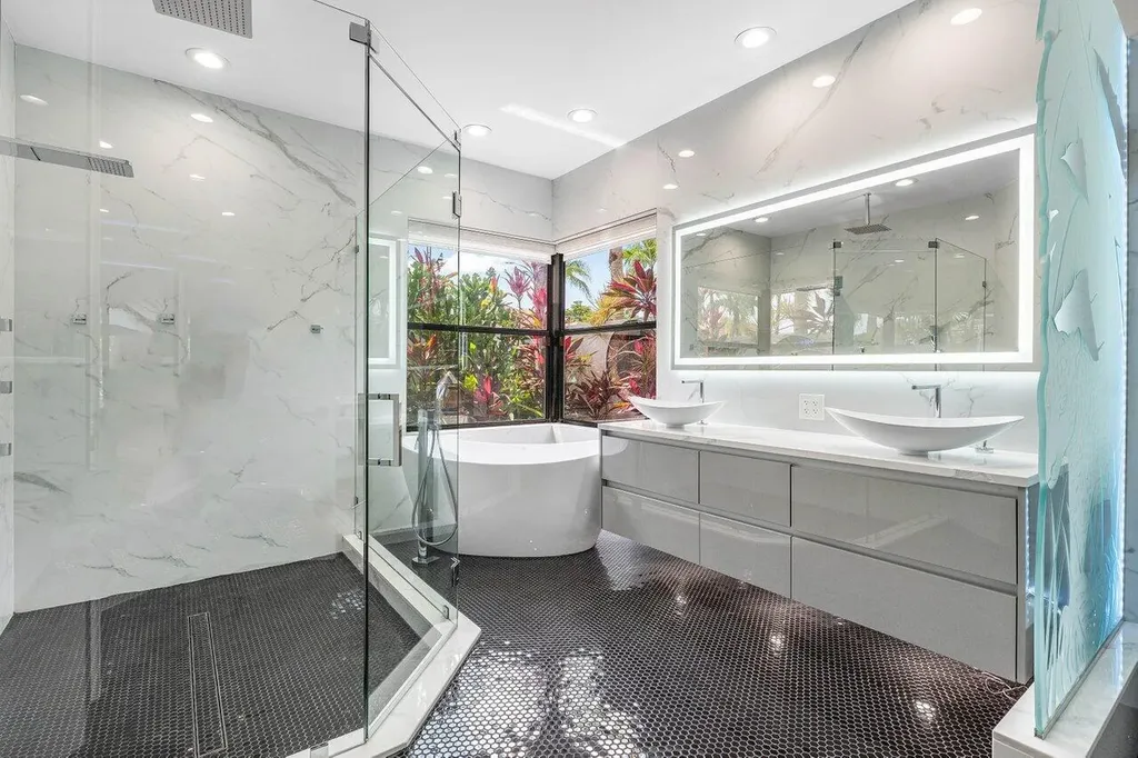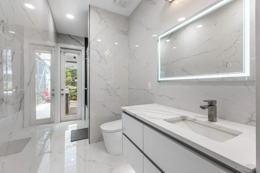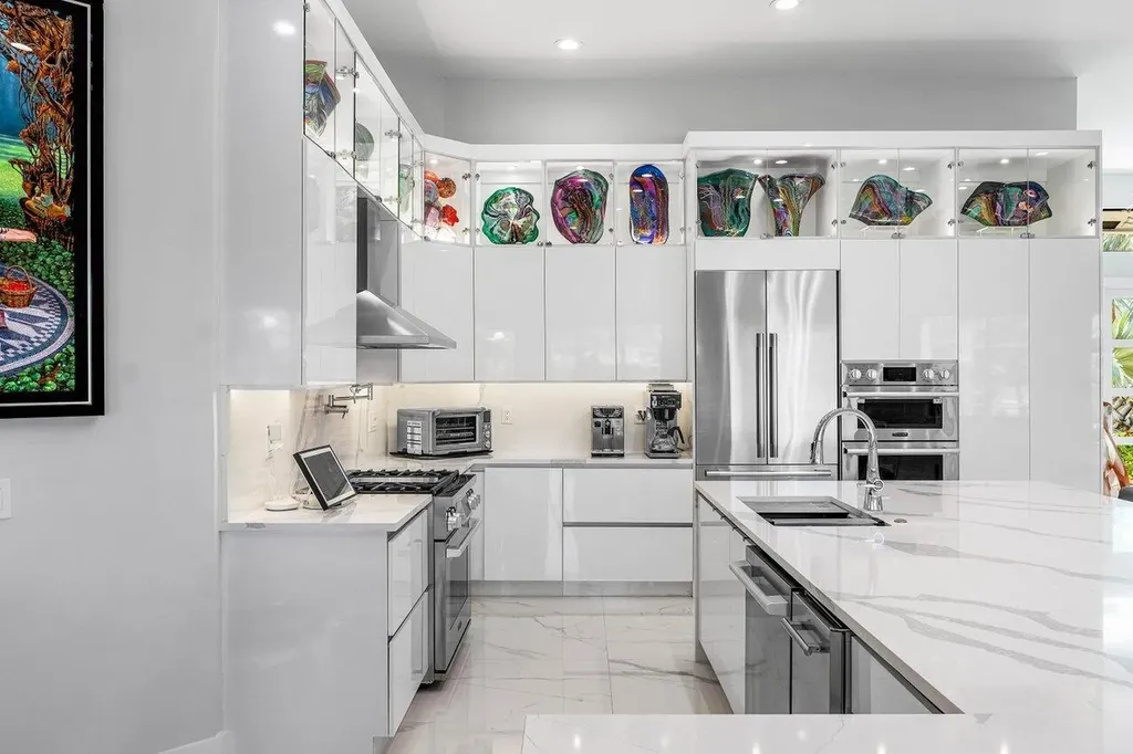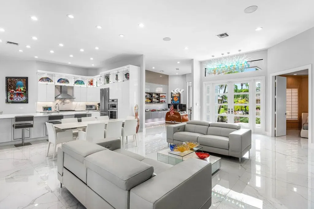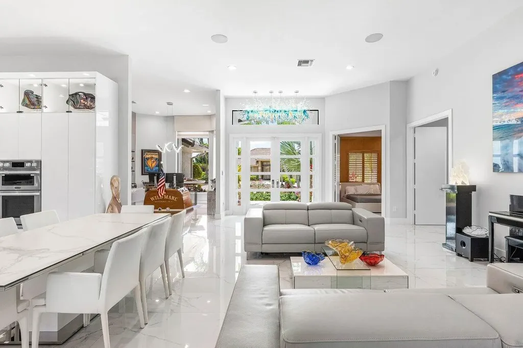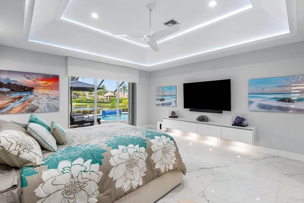 Welcome to this exquisitely renovated four-bedroom three bath luxury residence nestled in the heart of the sought-after Stonebridge Country Club. This is an opportunity to acquire a ''move-in, nothing needed'' home. Meticulously updated inside and out over the past two years ago with no expense spared, this elegant home blends timeless sophistication with modern comforts, offering the finest in South Florida living. From the moment you step inside, you're greeted by expansive living spaces adorned with designer porcelain tile flooring throughout. New custom cabinetry including floating cabinets with under lighting were installed in every room, providing the clean minimalist look awaiting your personal touch for accents. The outdoor kitchen features top-of-the-line built-in appliances, an oversized grill, Hibachi style griddle, separate countertop burner, refrigerator drawers, storage cabinet, and generous counter space, including a seating area with quartz countertop and waterfall edge. This area, and an associated dining area, are protected from the elements with a custom hurricane rated pergola with movable louvers which can be controlled via remotes or wired switch with an automatic closure function in the event of rain. The pergola contains integrated lighting and four ceiling fans, creating the ultimate space for alfresco dining and entertaining irrespective of the elements. The outdoor experience is complemented by a covered living area with ceiling fans and featuring a 75 inch Sunbrite television with audio system. A high end music system with overhead and rock speakers provides concert style audio over the entire area including the pool. The exterior is complemented by all new landscaping with landscape lighting, sidewalks and sprinkler system. Additional features include a whole-home generator, motorized blinds throughout the house, comprehensive whole house water purification system, new large-screen TV's with integrated sound systems in the master bedroom and family room, custom cabinetry and shelving with integrated lighting in office, ceiling fans throughout, smart toilets and numerous other upgrades that ensure comfort, security, and peace of mind. Stonebridge Country Club offers an exceptional lifestyle with world-class golf, tennis, dining, and social amenities. This is more than a homeit's a statement of elegance and modern luxury.