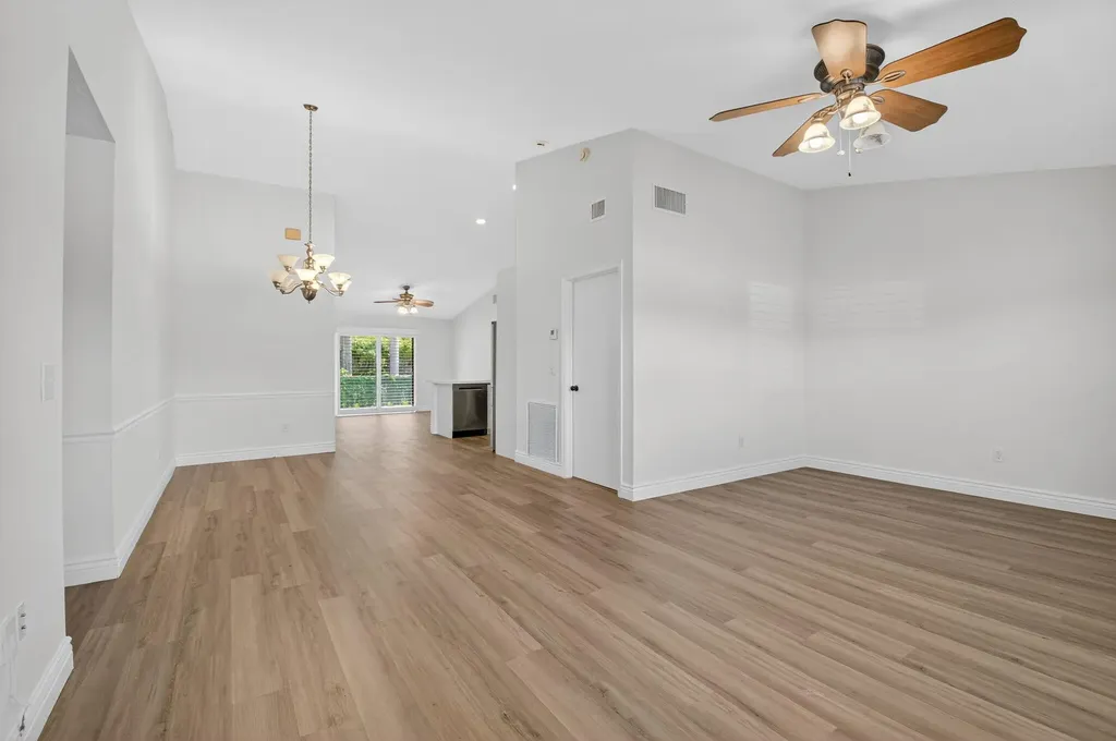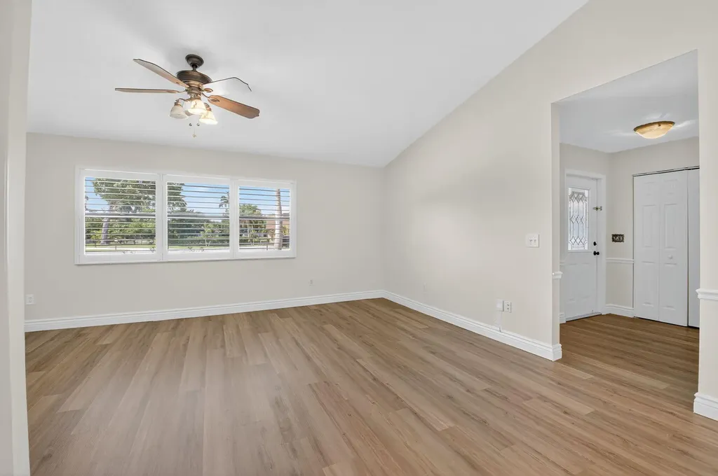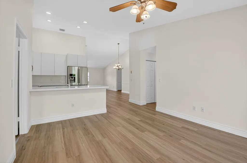 This home has been upgraded with over $50,000 in improvements, including full new sod throughout the property, over 100 new Clusia plants, Podocarpus, Turnette, and Croton plantings, and a full faux ivy privacy fence around the backyard. Pavers have been reset and resanded, and the kitchen features brand new cabinets, countertops, backsplash, faucet, garbage disposal, dishwasher, microwave, and oven range, along with a lightly used refrigerator. New luxury vinyl plank flooring was installed throughout the home (excluding bathrooms and laundry), and all windows and sliding doors were upgraded with new balances, tracking, frames, and rollers. The entire interior and exterior were freshly painted after popcorn ceilings were removed and replaced with a knockdown finish. Brand-new gutters were added around the entire home. Both bathrooms were updated with new cabinets, quartz countertops, sinks, fixtures, vanity lights, mirrors, and toilets (tile remained unchanged). Additional improvements include new interior doorknobs, a new front door deadbolt, and newly installed smoke alarms.