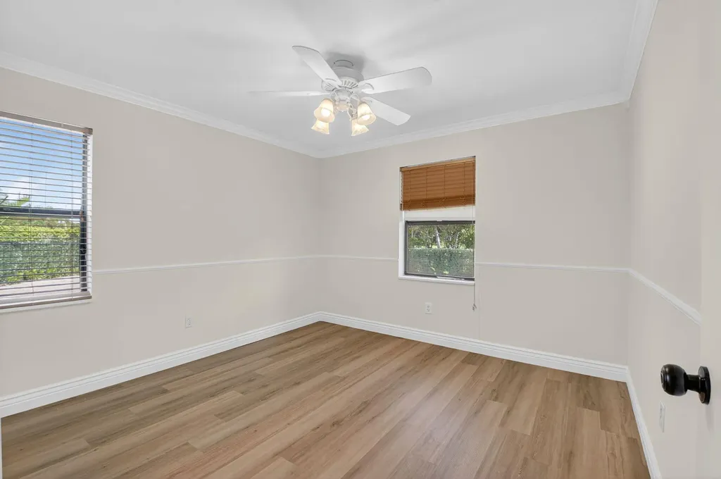 PHOTOS WITH FURNITURE ARE VIRTUALLY STAGED! Located in the highly desirable community of Palmetto Pines, also known as Holiday City at Boca Raton, this beautifully renovated single family pool home sits peacefully on a quiet cul-de-sac with a very, very low HOA. It offers the perfect blend of privacy, modern living, and exceptional value in one of South Florida's most sought-after neighborhoods. With 3 bedrooms, 2 bathrooms, a 2 car garage, and a sparkling private pool, this home is ideal for families, retirees, or anyone looking for comfortable, stylish living just minutes from everything Boca Raton has to offer. Inside, the home has been completely updated with high-end finishes and a fresh, modern aesthetic. The brand-new, never-used kitchen is a true centerpiece, featuring matte white flat-panel cabinetry, quartz countertops, and premium stainless steel appliances including a Samsung refrigerator, LG dishwasher, and Frigidaire induction range and microwave. The open-concept layout flows seamlessly into the living and dining areas, enhanced by light-toned luxury vinyl plank flooring, fresh interior paint, plantation shutters, and elegant baseboards with crown moldingcreating a clean, move-in-ready experience.