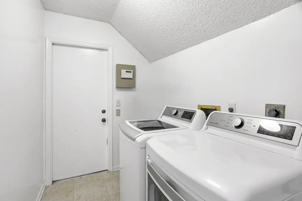 The private primary suite is located on the main level, offering lovely pool views with sliders for easy access, a walk-in closet and a reach-in closet, as well as an over-sized bathroom with separate tub and shower, linen closet and a dual sink vanity. Well-designed half bath and laundry room are also located on the main level with freshly cleaned tiled flooring throughout.