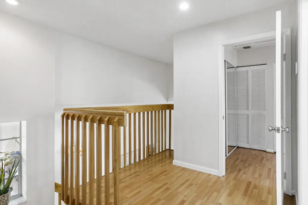 Well-kept light wood flooring on the stairwell brings you to a generously sized landing, 3 additional spacious bedrooms offering plenty of closet space, as well as a large bathroom with a combo/tub/shower and a dual sink vanity.
