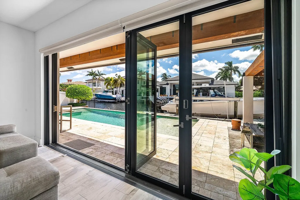 Stunning 4 bed/3.5 bath waterfront home located in the highly desirable Lake Rodgers Isle community featuring 80 feet of private dock space with a 24,000 pound boat lift. No fixed bridges to the ocean and just minutes to Lake Boca and the inlet. This light filled residence features an open floorplan with high end finishes, a custom kitchen with Wolf appliances and handcrafted cabinetry. Additional highlights include hurricane impact windows and doors, heated pool and spa. Enjoy outdoor living under a covered patio with lush tropical landscaping. Nestled in a peaceful enclave with no HOA, and just minutes from Boca Raton's finest beaches, top rated schools, shopping, and dining. Luxury waterfront living at its best!