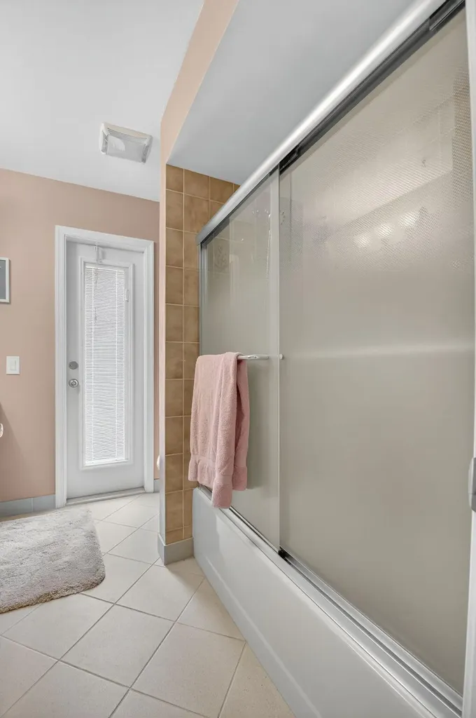 The split-bedroom layout ensures privacy for family and guests. Both guest bedrooms are bright and versatile, with one offering direct pool access and the other easily adaptable as an office, den, or gym. The guest bathroom includes a granite-topped vanity, tub/shower combination, and a private exterior door to the pool area.
