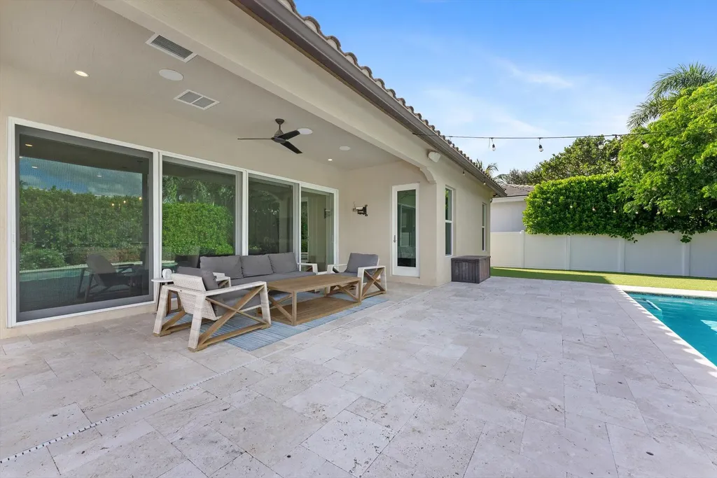Custom-built 2017 one-story house by Stuart & Shelby Development - solid CBS construction, full impact glass & 2017 concrete-tile roof = modern insurance + maintenance advantage. 5 bed / 3 bath split plan (2,808 SF A/C) with 10 ft and 12 ft ceilings, Italian hardwood floor, open chef's kitchen w/ gas, and pocket-style NanaWall sliders that open fully to a heated saltwater pool with sun-shelf & travertine deck. 2025 Trane Platinum 5-Ton HVAC (15.2 SEER2) w/ UV purifier + smart thermostat; gas WH & 500-gal LP tank. Smart-home integration & whole-house sound. Deep lot, high elevation, quiet interior street, fully fenced tropical yard, turf lawn, no HOA. Zoned Addison Mizner K-8. Minutes to beach, Mizner Park, Brightline & Boca Regional. Every box today's buyer wants - checked. PROPERTY FACT SHEET