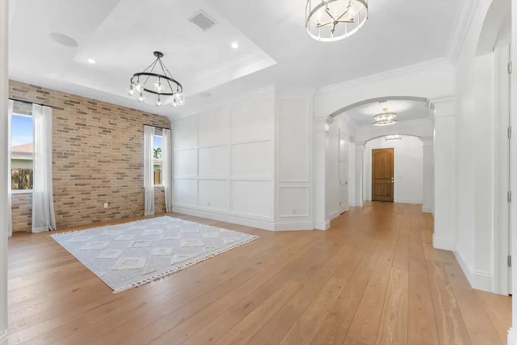 - Grand foyer with custom tray and coffered ceilings & arched transitions