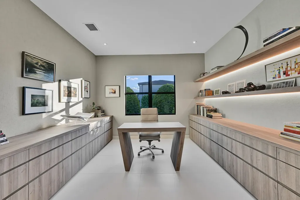 LULO Design Studio conceptualized the quiet luxury of this residence. Earth tones, exceptional materials & amazing craftsmanship and visual sophistication.No surface was left untouched. Custom cabinetry & lighting throughout thehome adds texture & warmth. The re-imagined kitchen features Wolf, Thermador & Fisher-Paykel. The primary bedroom is smartly appointed withcustom drapery and is generously sized. The primary bath seamlessly blends modern elements and tactile materials. The guest bath was reconfigured to maximize space. The powder room is fitted with a Taj Mahal quartz integrated sink & silk wallpaper. The Italian porcelain extends from inside the home to embrace the 40 ft heated/cooled saltwater pool. The LOTUS community features resort style amenities Clubhouse & pickleball. OUTSTANDING FEATURES AND UPGRADES 8538 Apple Falls Lane