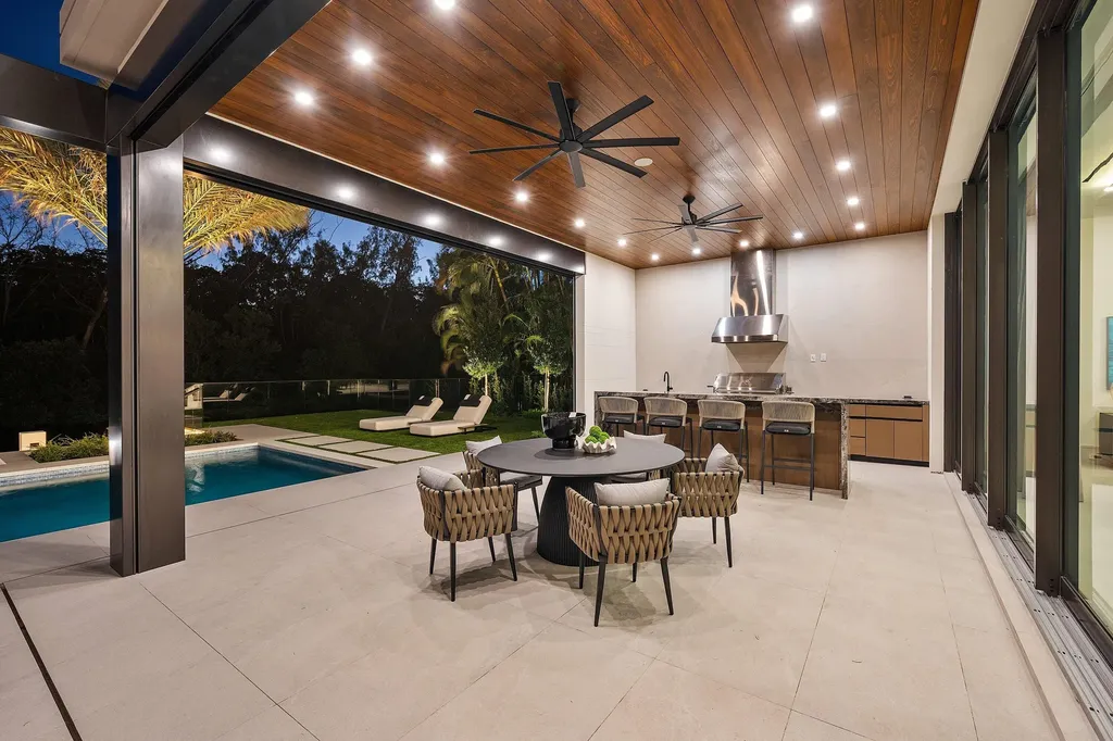 - Exterior FeaturesCovered Patio, Custom Lighting, Summer Kitchen