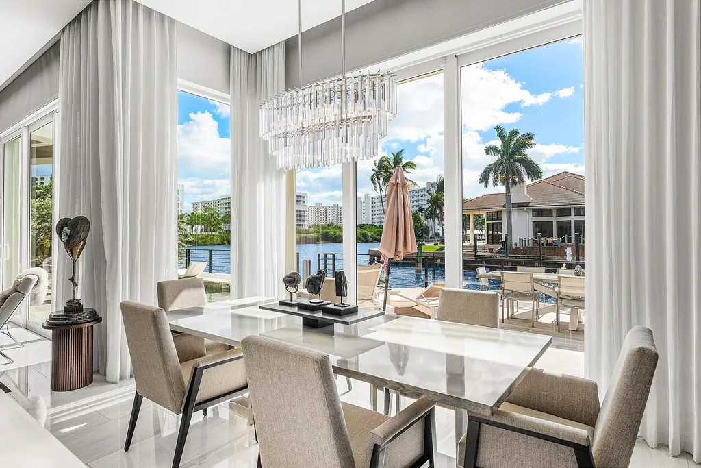 A rare opportunity to own a true custom waterfront estate in the prestigious enclave of Boca Bay Colony, privately positioned on a quiet cul-de-sac just one estate from the point, offering commanding views of both the Intracoastal Waterway and the canal.This modern architectural masterpiece features 117 feet of deepwater frontage, no fixed bridges, and direct access to the Atlantic Ocean--ideal for serious yachting enthusiasts. Designed and built with uncompromising attention to detail by Terry Cudmore, with architecture by Randall Stofft, the residence seamlessly blends refined luxury with exceptional functionality.Upon arrival, a dramatic two-story foyer with a glass-railed staircase sets the tone for the home's elevated design. Soaring volume ceilings, marble flooring, and floor-to-ceiling glass flood the interiors with natural light while framing elegant water views throughout.