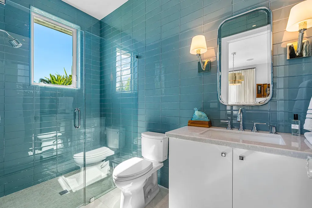 The second level is constructed entirely of concrete for superior strength and sound insulation. Four spacious en-suite bedrooms provide privacy and comfort, including a grand primary retreat featuring custom wood built-ins, morning bar, private balcony, dual walk-in closets, and a spa-inspired bath with book-matched marble walls, soaking tub, and dual vanities. Wood flooring adds warmth to the bedroom suites, while marble continues through the common areas. Additional highlights include a poker/lounge room with marble built-ins and instant tankless hot water. Outdoors, enjoy resort-style waterfront living with a heated saltwater pool and spa, expansive entertaining terraces, summer kitchen with built-in BBQ, and a private dock accommodating up to a 60-foot vessel. A Japanese clay tile roof ensures durability and minimal maintenance.