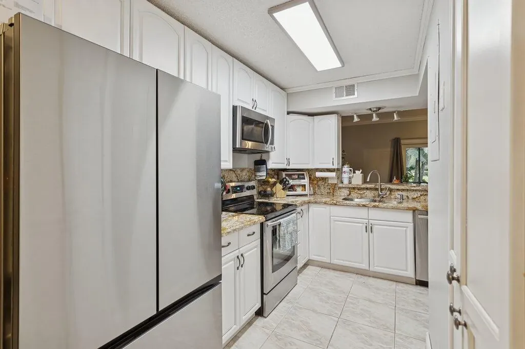 Rare opportunity in immensely popular Woodstream in the Lakes at Boca Raton. Charming two-bedroom two-bath town home now available for sale. End unit. Neighbors on one side only. Extra windows for a bright, airy feel. Stylish kitchen with granite counters, undermount sink and stainless-steel appliances. No carpet. Ceramic tile and laminate throughout. One bedroom and full bathroom with a walk-in shower on the ground floor. The practical side of you will love the 2024 barrel-tile roof and impact glass throughout. Investors welcome. Can rent immediately. Pet friendly. No breed restrictions. Lakes at Boca Raton features a junior Olympic community pool, fitness center, tennis, basketball and pickleball courts. A-rated schools. FHA and VA financing welcomed. Call now!