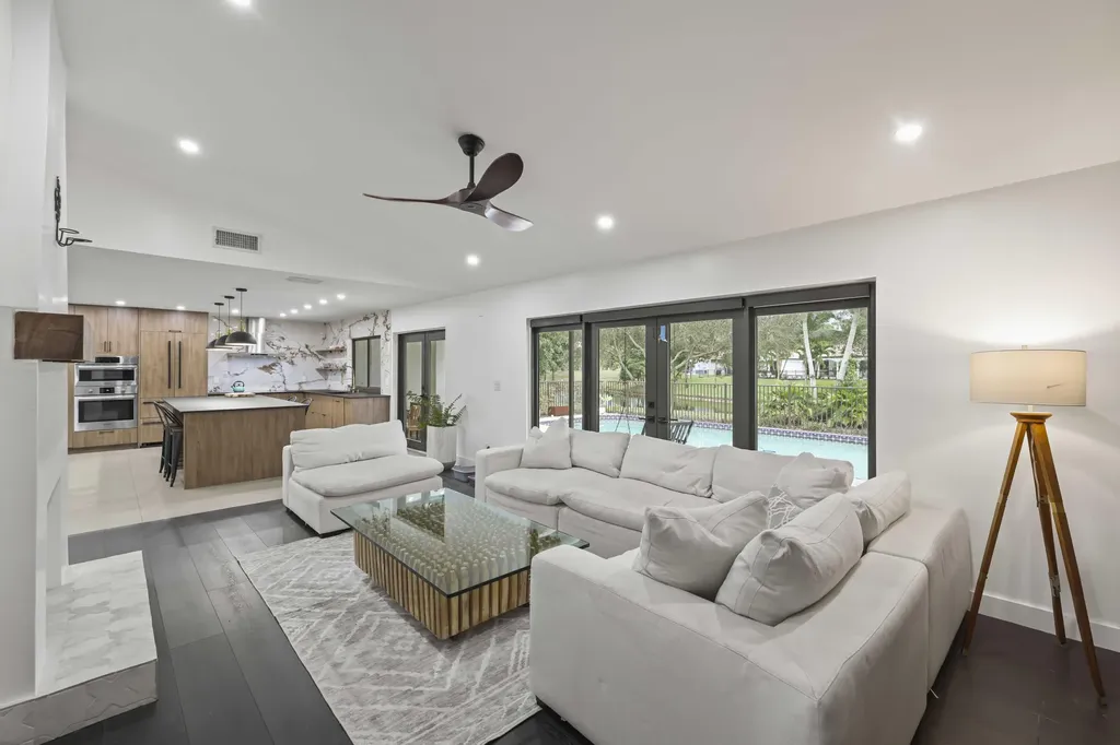 Welcome to 2708 NW 26th Circle, a fully renovated lakefront retreat tucked away in Timbercreek, one of Boca Raton's most peaceful and sought-after communities. Set on a quiet, tree-lined street just off the prestigious St. Andrews corridor, this home offers a rare combination of privacy, modern luxury, and scenic water views.Situated on an expansive 0.33-acre pie-shaped lot, the property overlooks a winding lake and features a private resort-style pool, creating a tranquil setting ideal for both everyday living and entertaining. This residence includes four bedrooms plus a glass-enclosed office, two full bathrooms, and two half baths, all thoughtfully redesigned with high-end finishes throughout. Nearly every room captures sweeping lake and pool views, filling the home with natural light and a calm, open feel. At the heart of the home is a chef's kitchen showcasing premium Bosch appliances, a 10-foot Lapitec sintered stone island that is scratch- and smudge-resistant, custom pull-out cabinetry, a Liebherr refrigerator, and seating for four, perfect for daily living and effortless entertaining.